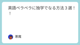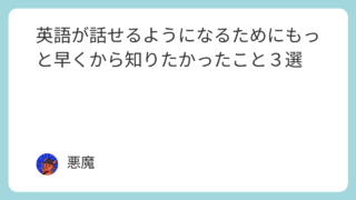 けんじねー悪魔くん英語ペラペラになるためにたくさん勉強したと思うんけど...もっと早くから知っておけば、もっと早くペラペラになれたなあってことある?悪魔うん。知ってればもっと早く英語ペラペラになってたなあって感じることいっぱいあるんだけど....